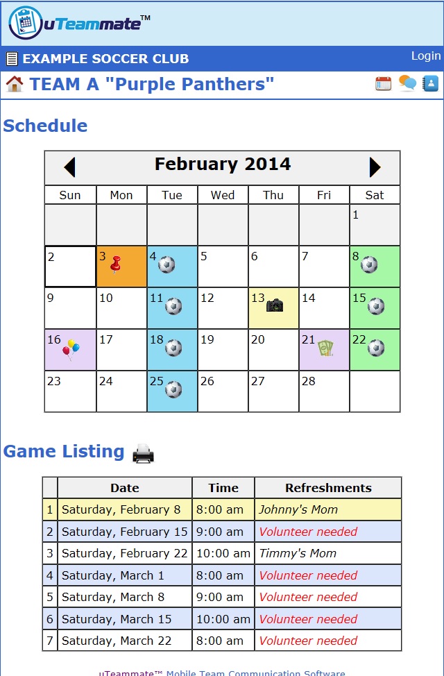 - A mobile-friendly calendar to show team schedules from any computer or mobile device.