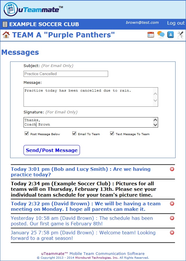 uTeammate is an online service for coaches, team moms, parents and sports clubs to stay connected with one another. uTeammate allows users to manage team schedules, send team messages, signup for volunteer positions, and much more!